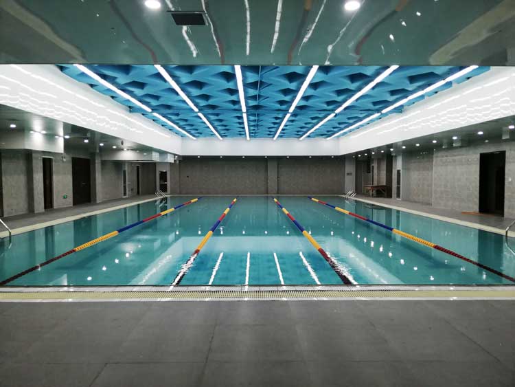 值得一提的是,项目还引入了三集一体恒温除湿热泵——这一集成除湿、制冷、加热功能于一体的泳池设备。它不仅能有效控制室内高湿环境,防止墙体结露与结构腐蚀,还能将除湿过程中回收的热量用于池水加热或空间升温,实现能源的梯级利用,真正达成“一机多能、节能增效”的目标。通过这套系统,泳池室内湿度稳定控制在50%~75%的人体舒适区间,水温保持在26~28℃,相比传统加热方式,节能效率甚至达到60%。