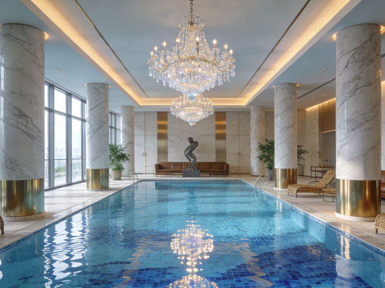 在实际应用中,这1微米级精滤能力发挥了关键作用,水中的细菌、藻类、毛发碎屑等各类杂质被高效截留,深度解决了传统泳池可能存在的水质浑浊、杂质清理不彻底的问题。同时,高过滤精度让泳池无需额外投加沉淀剂,能减少约30%的水处理化学药剂用量,既避免了化学药剂对水质的二次影响,又让池水保持自然温润状态,降低了泳池在药剂耗材上的运营成本,让高端亲水体验更健康、更安心。