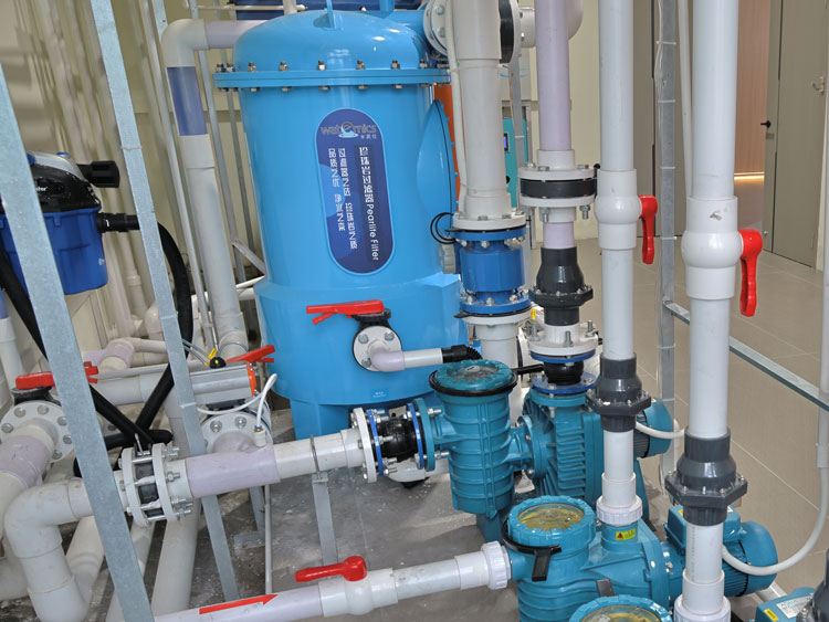 设备内置滤料再生功能,支持珍珠岩滤料多次循环利用,相较传统泳池设备可节省高达90%的水电消耗。同时,反冲洗用水量显著降低,全年电费支出同步下降,为场馆带来长期运营效益。在空间利用方面,其占地面积仅为传统设备的五分之一,可有效释放机房空间,优化设施布局。