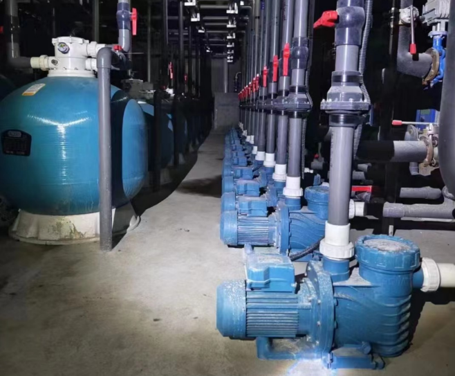 AQUA爱克泳池水泵和AQUA爱克泳池过滤全面去除温泉水中的杂质与沉积物,与动力强劲、流量澎湃的循环水泵共同作用,保持温泉水质清澈。