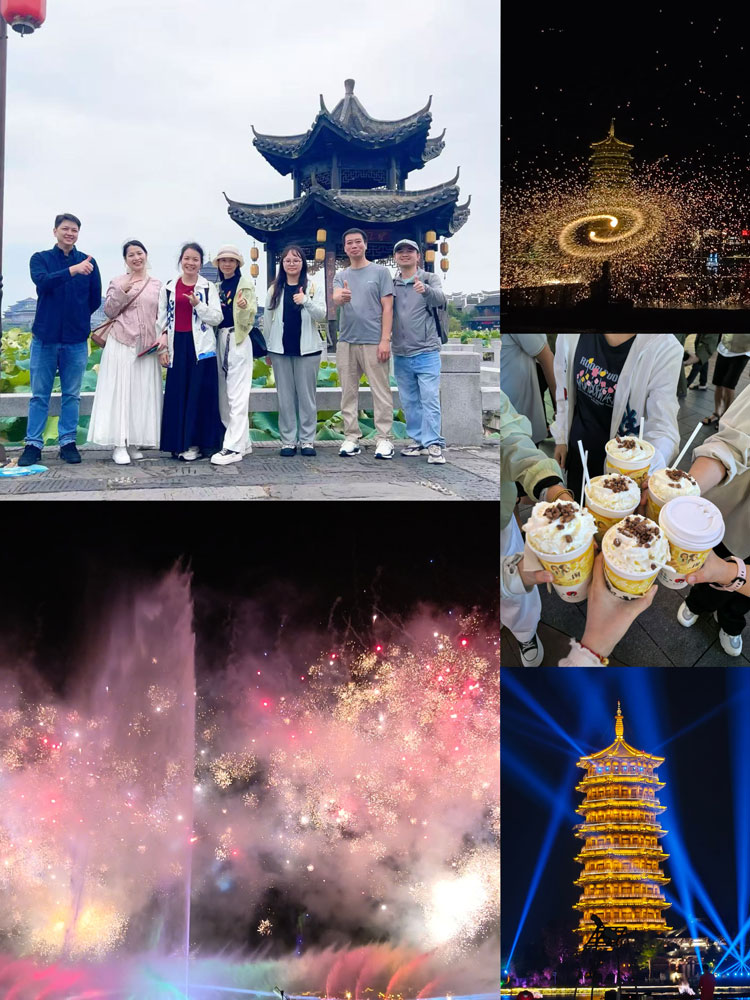 若韶山之行是精神洗礼,那新华联铜官窑古镇的游览则是一场文化盛宴。作为斥资百亿打造的文化地标,此处还原了盛唐时期“海上陶瓷之路”的繁华景象,让员工们仿佛穿越千年。团队成员参观陶瓷博物馆,了解釉下多彩陶瓷的制作技艺,观看《瓷路霓裳》实景演出,并一同欣赏了“花火铜官”的璀璨烟花。